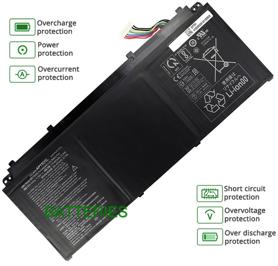 - Notre batterie Acer AP1505L contient des cellules de batterie de qualité A pour assurer une durée de vie de la batterie plus longue et plus de cycles de charge.