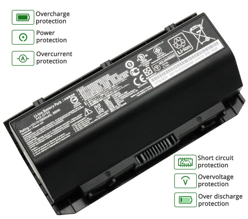 - Notre batterie ASUS G750JS-RS71 contient des cellules de batterie de qualité A pour assurer une durée de vie de la batterie plus longue et plus de cycles de charge.