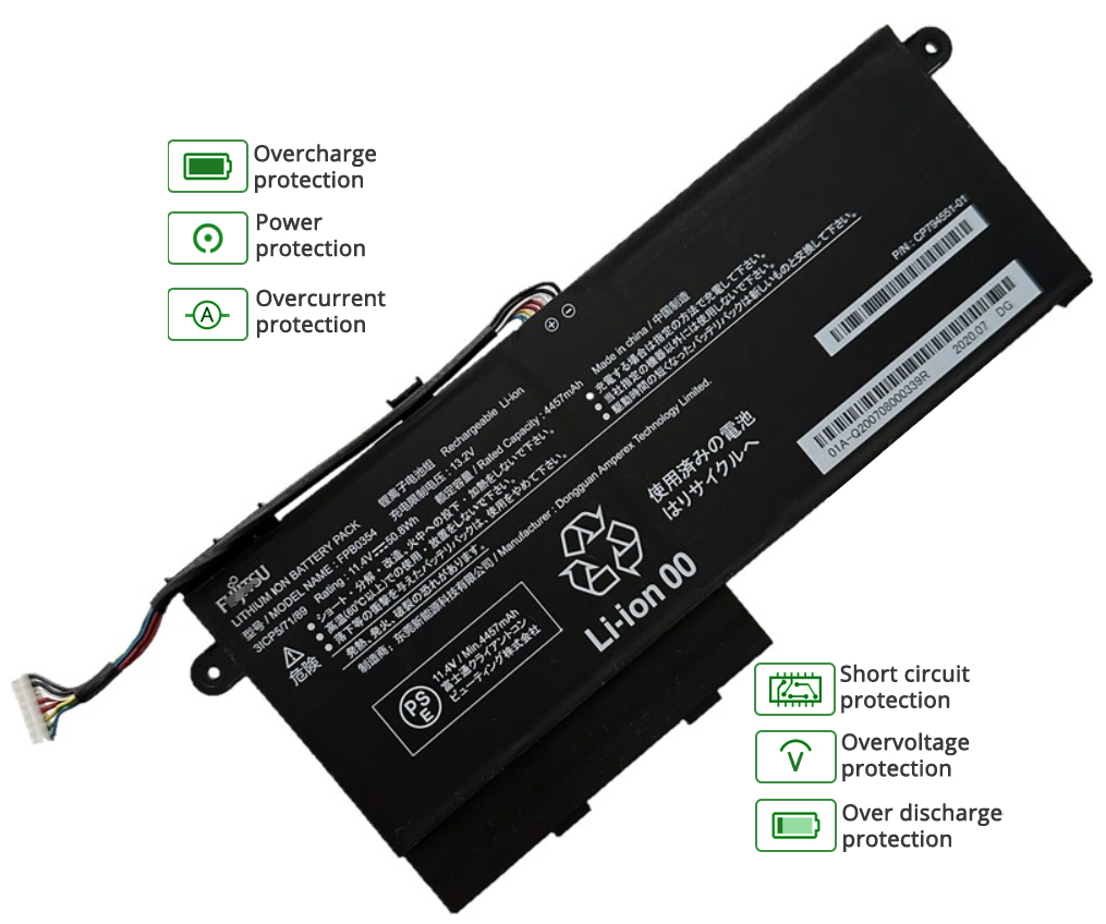 - Notre batterie FUJITSU FPB0354 contient des cellules de batterie de qualité A pour assurer une durée de vie de la batterie plus longue et plus de cycles de charge.