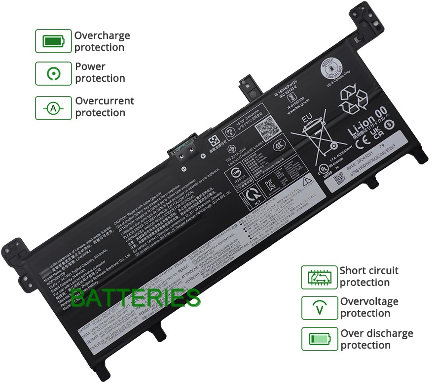 - Notre batterie Lenovo L24L4PK4 contient des cellules de batterie de qualité A pour assurer une durée de vie de la batterie plus longue et plus de cycles de charge.