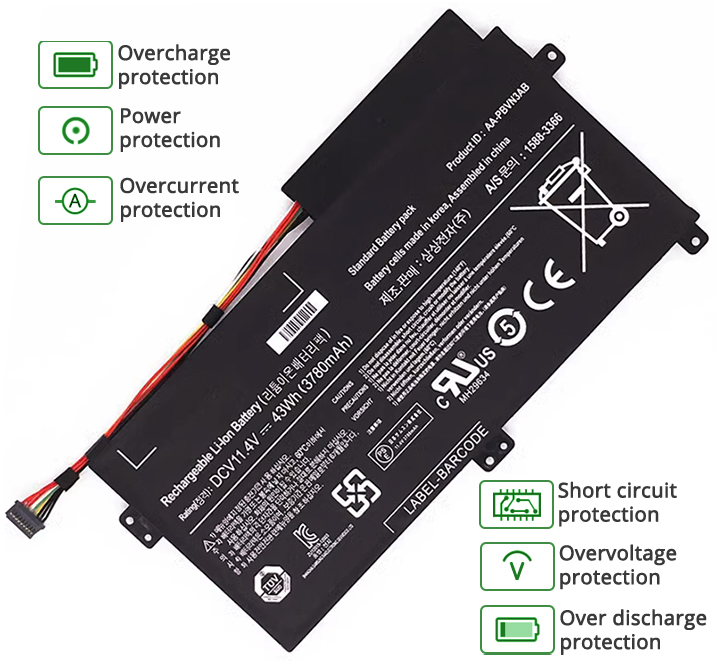 - Notre batterie Samsung NT3370R4E contient des cellules de batterie de qualité A pour assurer une durée de vie de la batterie plus longue et plus de cycles de charge.